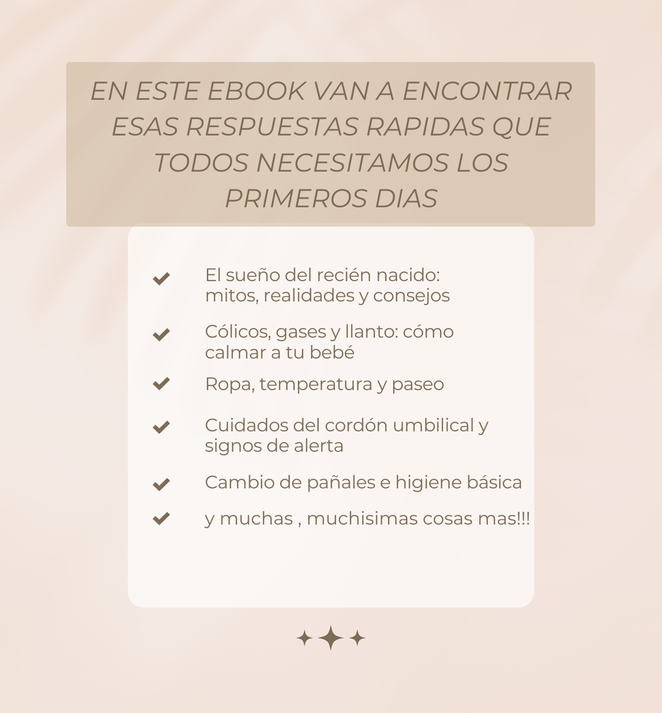 Este eBook está pensado para acompañarte en el inicio de la maternidad o paternidad con información clara, consejos útiles y contención emocional. Porque nadie nace sabiendo… pero con el acompañamiento correcto, todo se vive mejor.